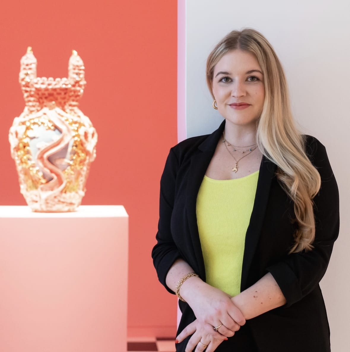 Caitlin Monachino is the Curatorial and Publications Manager at The Aldrich Contemporary Art Museum. Since joining The Aldrich in 2018, she has organized presentations with artists including Julia Bland, Wen Liu, Maya Jeffereis, Moko Fukuyama, Esther Ruiz, Amy Brener, and Adrienne Elise Tarver. She curated Yvette Mayorga: Dreaming of You (2023), the artist's first East Coast solo museum exhibition, and has worked on several major exhibitions including Frank Stella’s Stars, A Survey (2020) and 52 Artists: A Feminist Milestone (2022). Future projects at The Aldrich include a solo presentation with artist Estefania Puerta (September 2025); a co-organized two-person exhibition with artists Chiara No and Chenlu Hou (January 2026); and the first-ever Aldrich Decennial, a museum-wide exhibition featuring artists living and working in Connecticut (June 2026). She is also co-organizing the group exhibition Still Point, which will open at Ortega y Gasset Projects in September 2025.